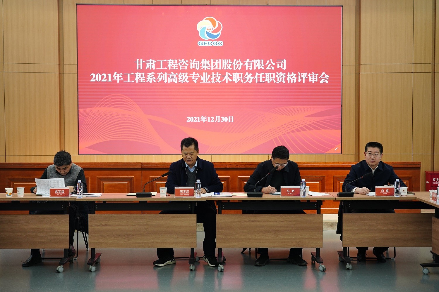 12月30日,甘肅工程咨詢集團召開2021年工程系列高級專業技術職務任職資格答辯測評及評審會(代評中級),集團公司黨委書記、董事長、高評會主任委員宋忠慶,集團公司黨委副書記、總經理、高評會副主任委員馬明,集團公司黨委委員、監事會主席、高評會副主任委員焦軍毅,評委會專家及集團公司高評會辦公室、紀委,建筑設計院相關人員參加。