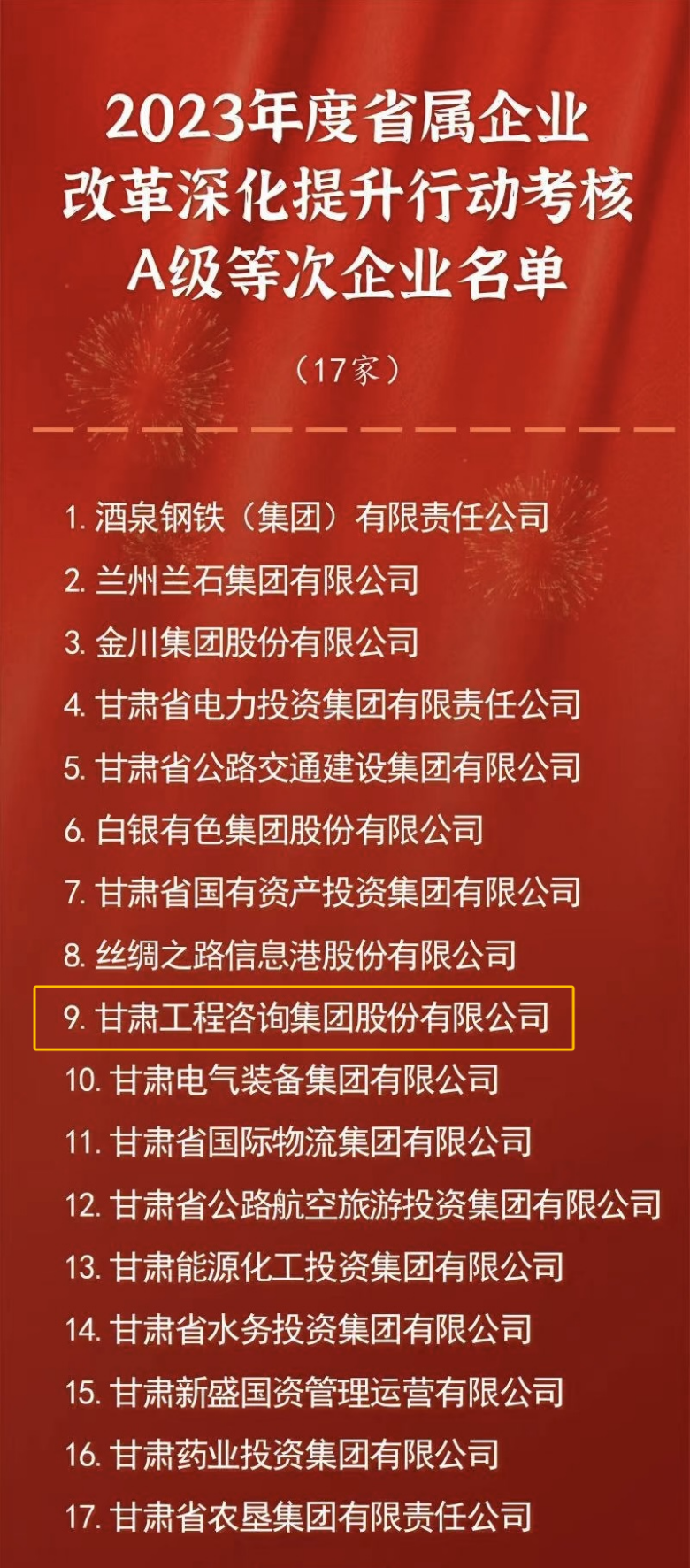 2023年度省屬企業(yè)改革深化提升行動(dòng)考核A級(jí)等次企業(yè)名單