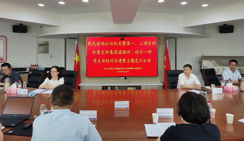 為認真貫徹落實黨的十九大和十九屆歷次全會精神及省第十四黨代會精神,創新基層黨建工作載體,提高基層黨建工作水平,進一步鞏固黨史學習教育成果,6月16日,蘭州乾元交通規劃設計咨詢有限公司機關、第一項目所、第二項目所黨支部與甘肅交科集團設計一所、道路所黨支部聯合舉辦了主題為“支部共建聚合力 互促共贏雙提升”的結對共建暨主題黨日活動。