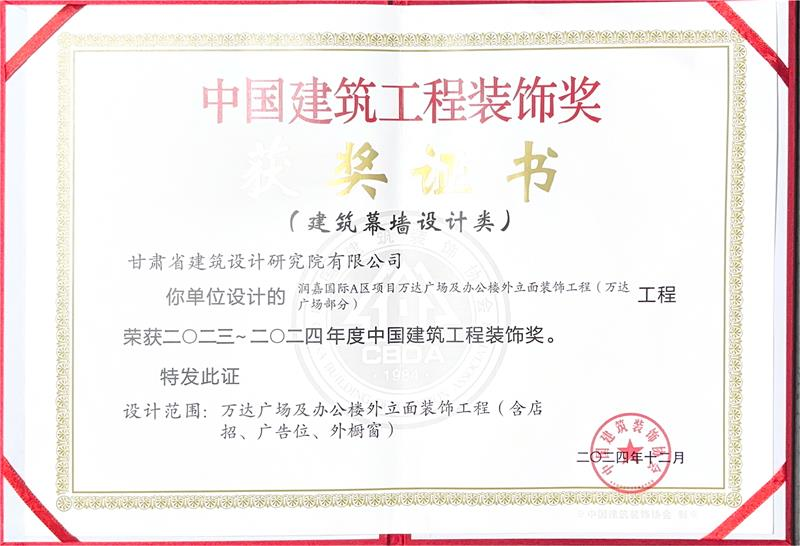 近日,中國建筑裝飾協(xié)會(huì)公布了2023-2024年度“中國建筑工程裝飾獎(jiǎng)”獲獎(jiǎng)名單,省建筑設(shè)計(jì)院承擔(dān)設(shè)計(jì)的“潤嘉國際A區(qū)項(xiàng)目萬達(dá)廣場(chǎng)及辦公樓外立面裝飾工程(萬達(dá)廣場(chǎng)部分)”榜上有名。