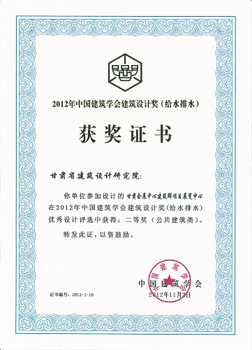 2012年中國建筑學會設計獎甘肅會展中心(給排水)