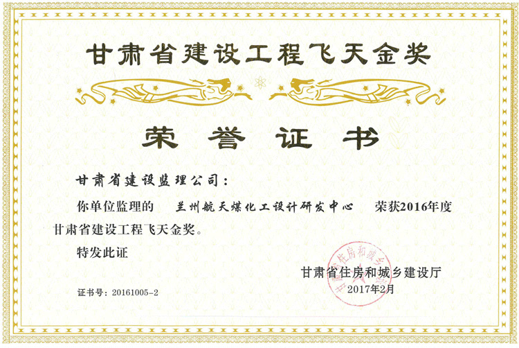 2016年度甘肅省建設(shè)工程飛天金獎